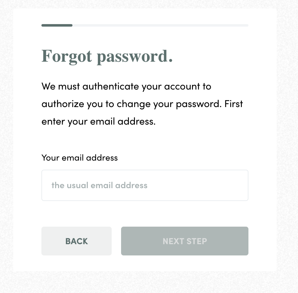 Pick a new password that meets our security requirements (8 characters, 1 upper-case letter, 1 lower-case letter, 1 number, 1 special character)