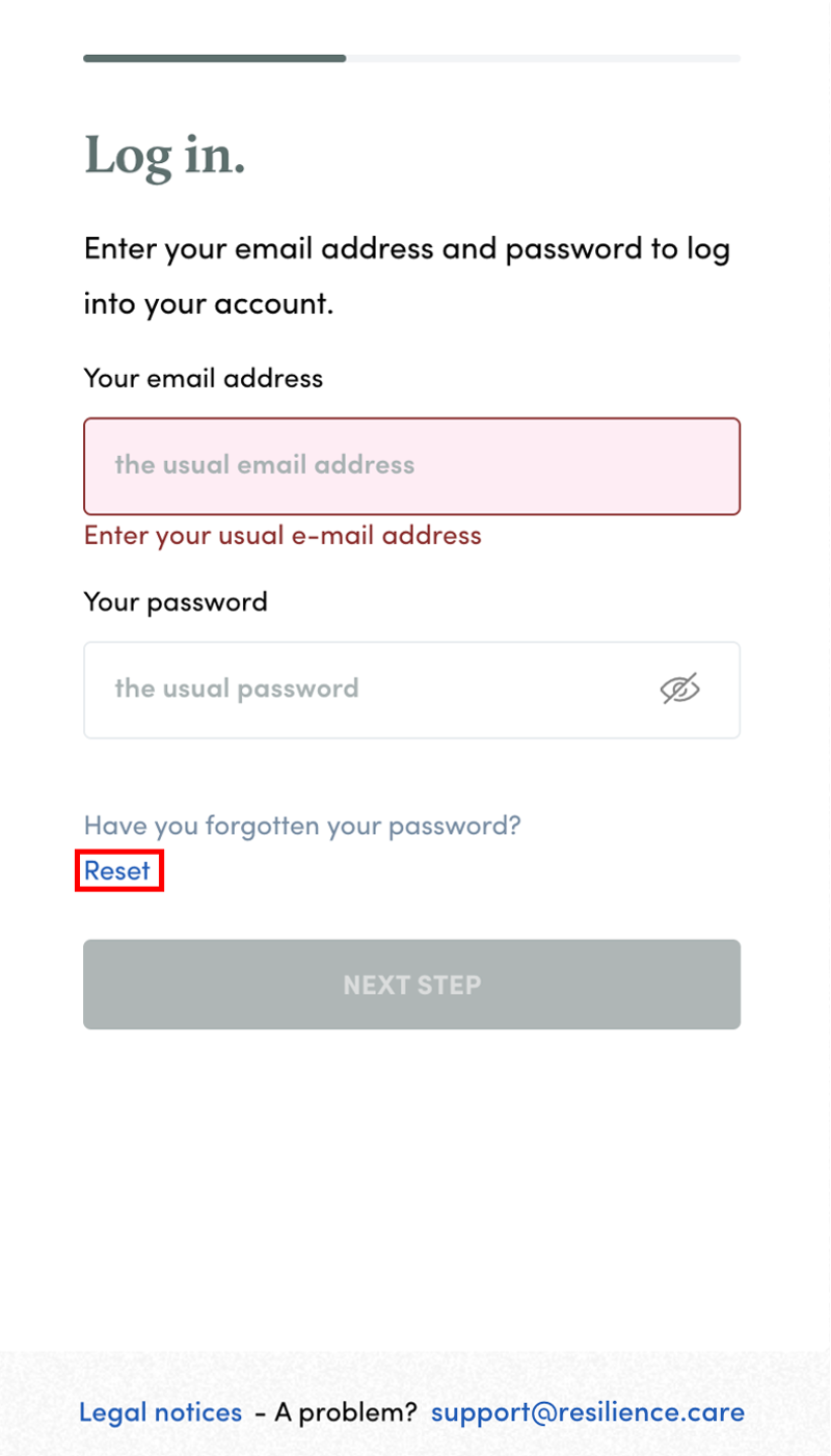 If you have forgotten your password, you can create a new one by clicking on “Reset” on the log in page.
