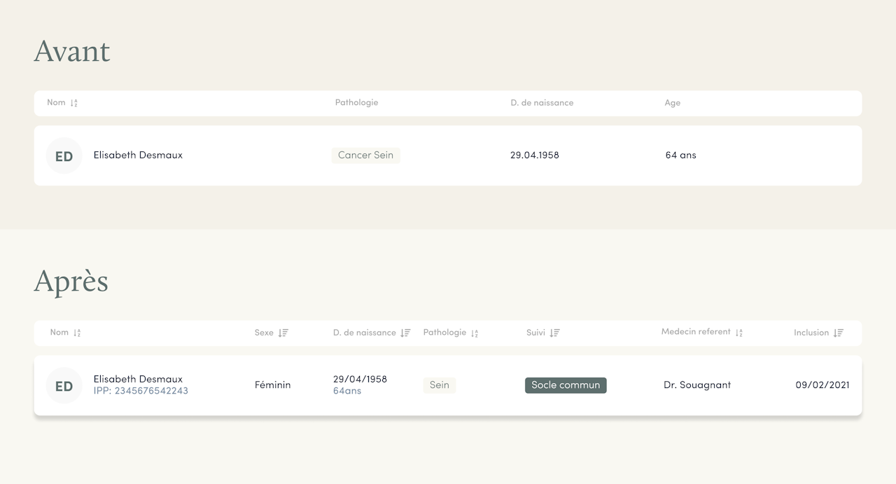 Dans la continuité des améliorations graphiques et organisationnelles apportées à vos alertes lors de la dernière mise à jour, la page de listing présente à son tour un nouveau design. L'ajout d'informations vous permettra à présent de piloter plus efficacement l'identification de vos patients.