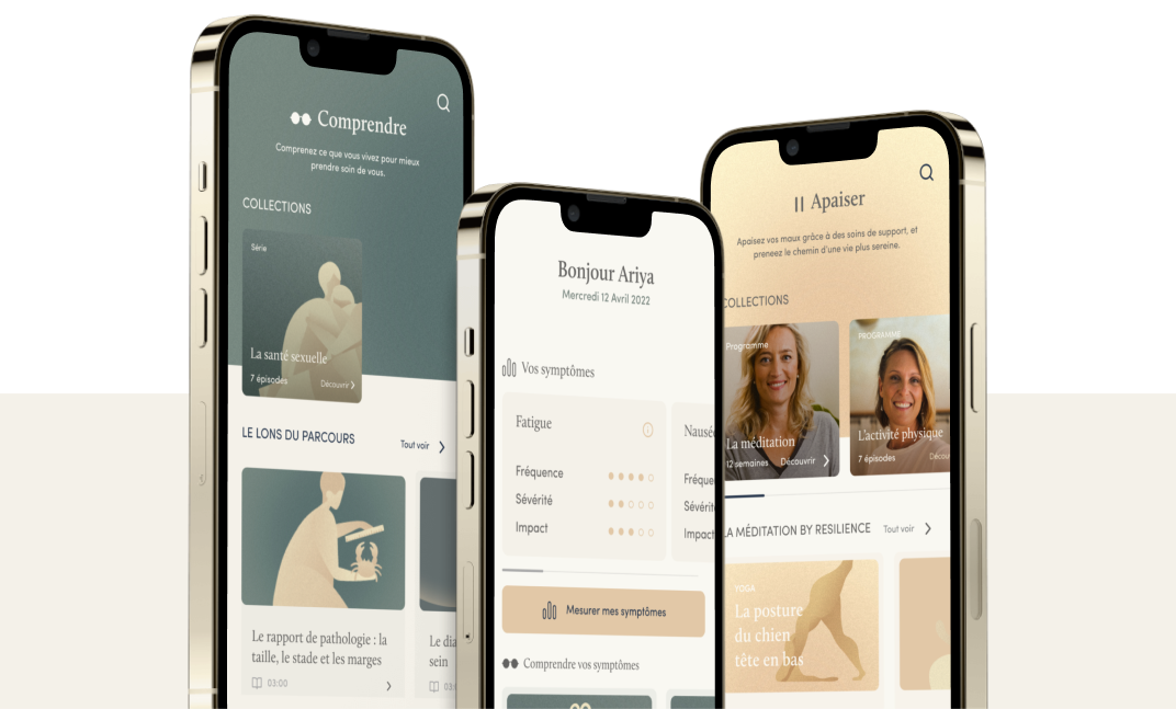 Nous sommes heureux de vous annoncer l’arrivée des programmes Resilience, que les patients pourront retrouver dès le mois prochain dans leur application compagnon au sein de l’espace “Apaiser”.