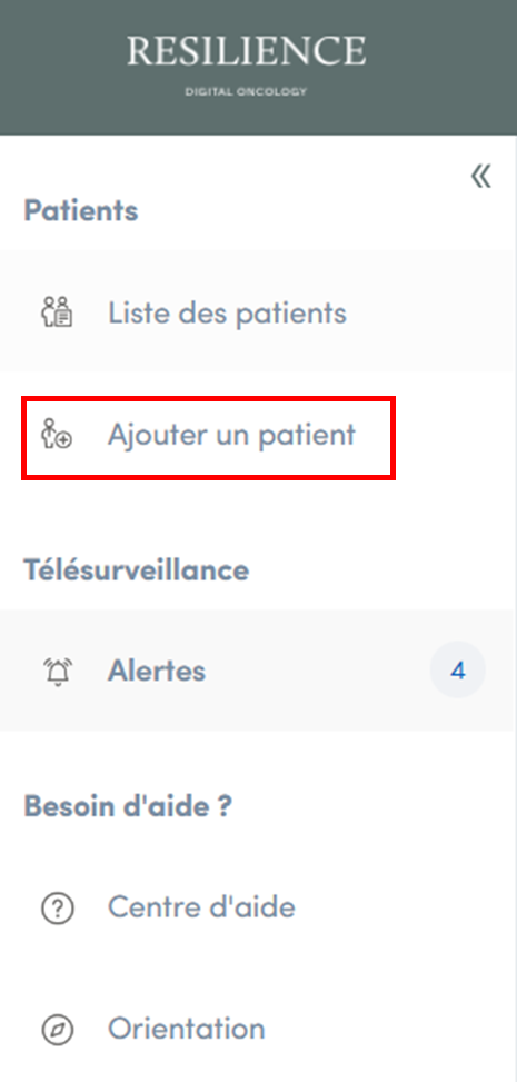 Pour inscrire un nouveau patient dans Resilience, à partir de l’interface soignant Resilience :