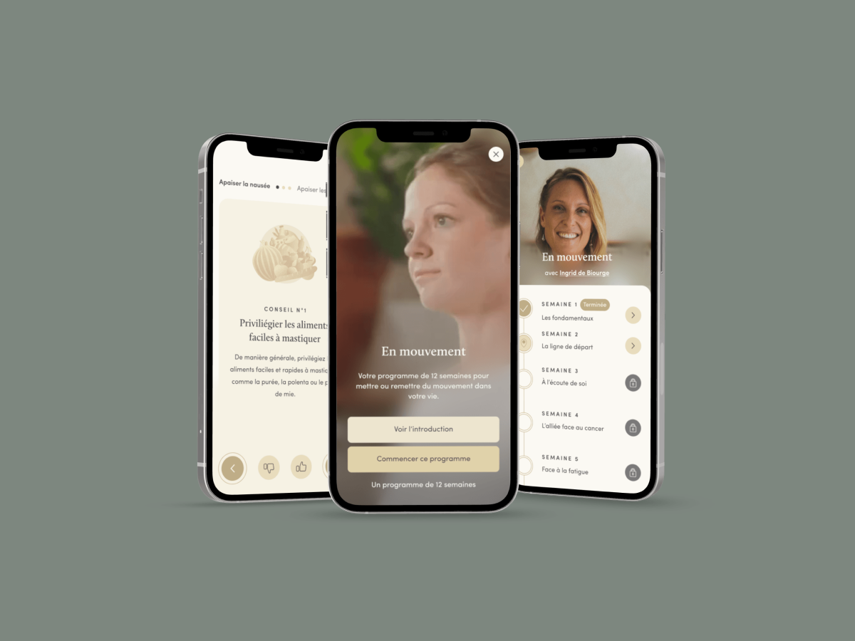Les programmes de soins de support digitaux conçus par Resilience ont pour objectif d’améliorer la qualité de vie des patient·e·s à travers des approches et des pratiques complémentaires aux soins. Leur but est de soulager des symptômes ciblés.