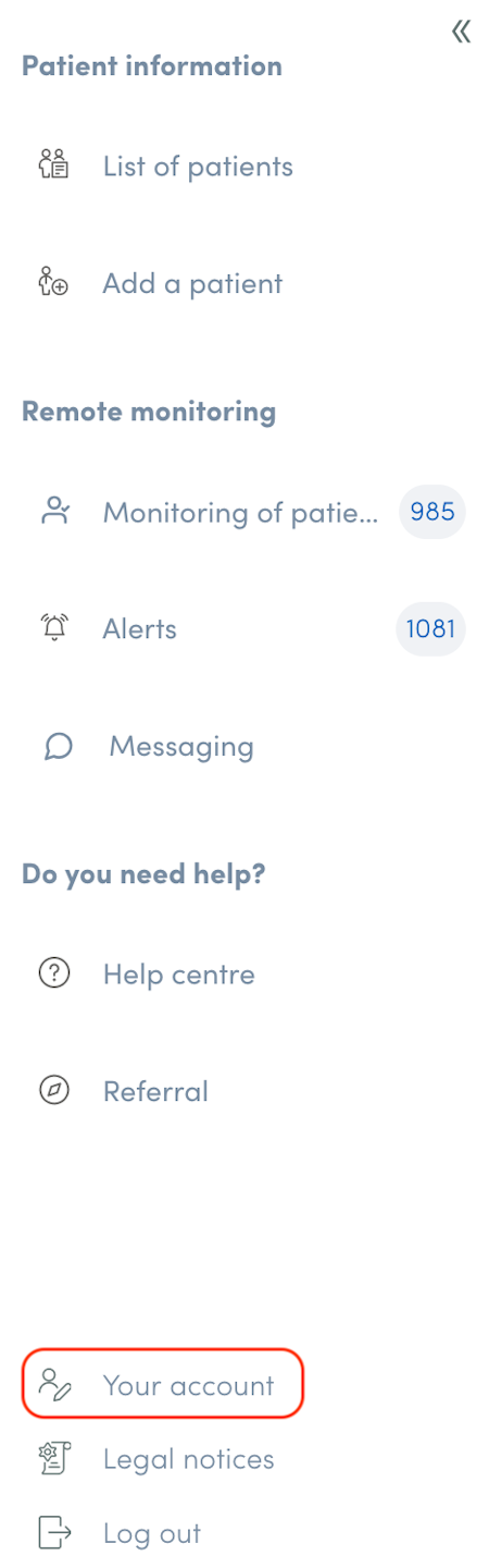 Cliquez sur l’onglet “Votre compte” en bas à gauche de l’interface soignant