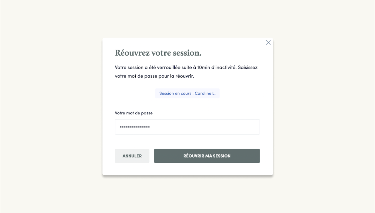 Pour que la sécurité des données de vos patients soit toujours mieux préserver, votre session se verrouille à présent automatiquement passé un certain délai d’inactivité.