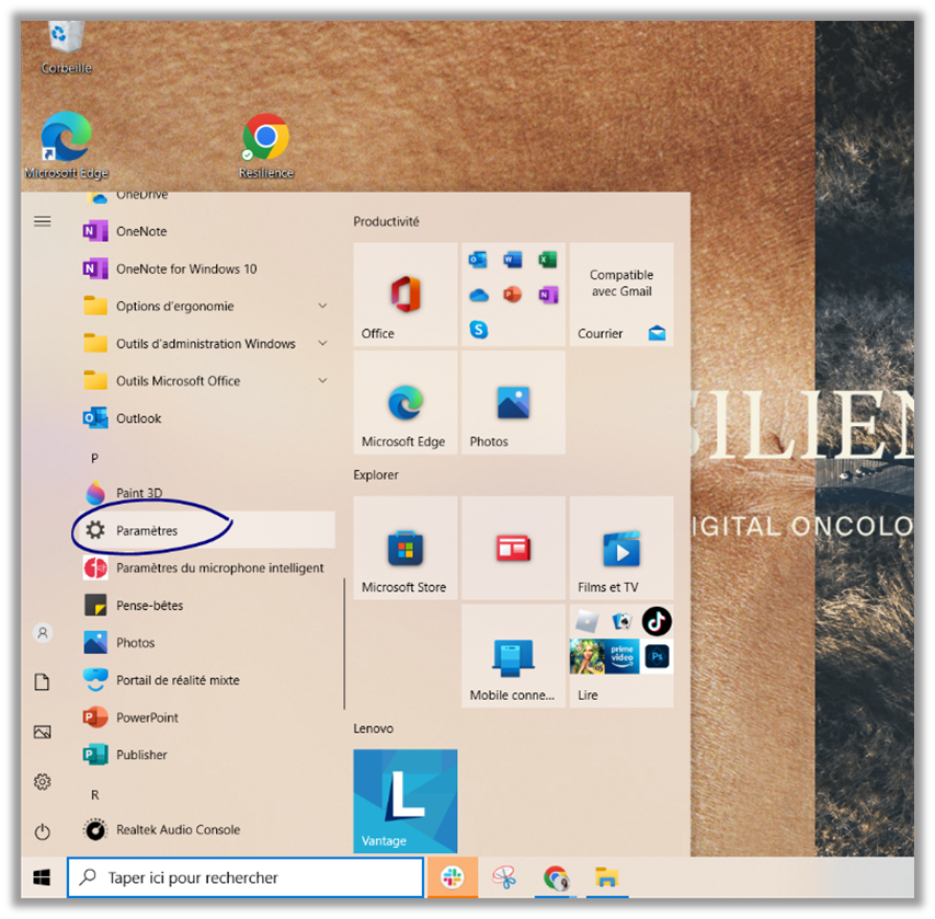 Vérifiez votre navigateur par défaut actuellement paramétré. Pour cela, allez dans le menu démarrer puis dans les paramètres système de votre poste de travail.